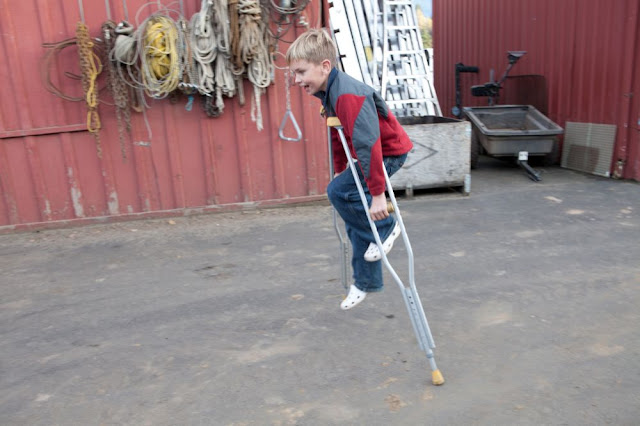 We got all of her crutches and walkers and wheel chairs out of the barn and had a ball using them around the farm.